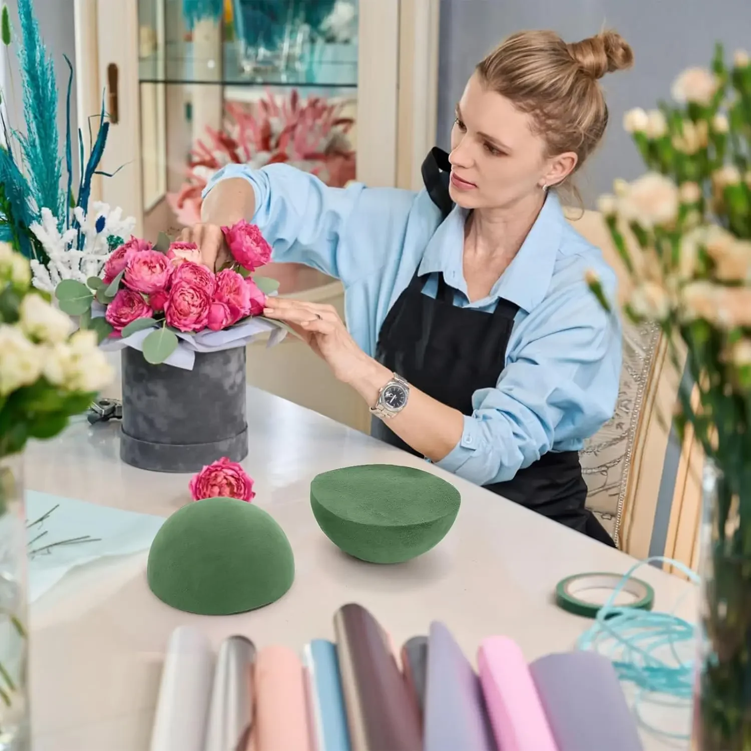 Made from lightweight, high-quality foam, it is easy to cut, shape, and work with, allowing you to design custom centerpieces, bouquets, and tabletop decorations. The vibrant green color blends naturally with floral stems, giving your arrangements a polished and professional look. Perfect for crafters, hobbyists, and event decorators, these floral foam half balls provide a practical and creative solution for stunning decorative displays.