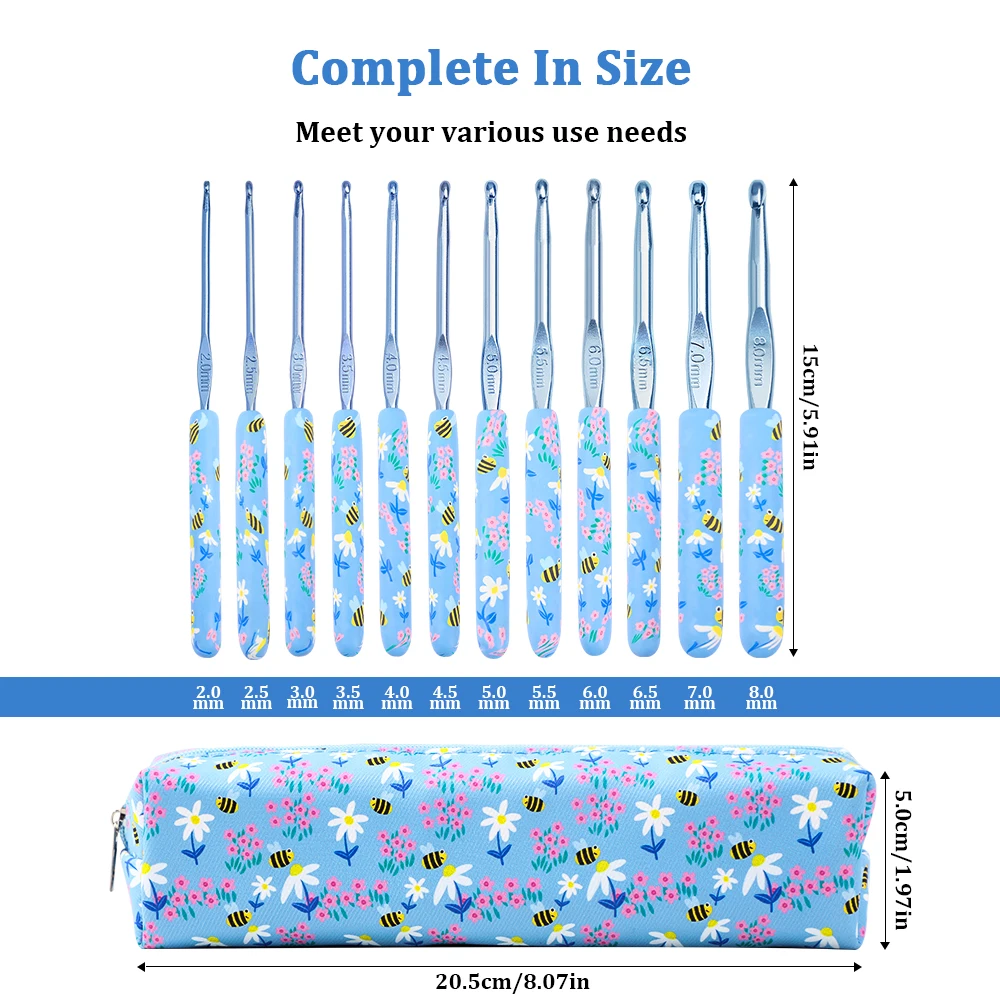 Blue Bee Flower Soft Ceramic Crochet Hooks are crafted to bring both comfort and beauty to your crochet projects. Designed with a smooth ceramic surface, these hooks allow yarn to glide effortlessly, helping you create even, consistent stitches with ease. The elegant blue floral pattern adds a charming decorative touch, making your tools as enjoyable to look at as they are to use. Built for comfort, the ergonomic design helps reduce hand strain during long crafting sessions, making them ideal for both beginners and experienced crocheters. Perfect for making scarves, blankets, garments, and other DIY yarn creations, these crochet hooks combine style, durability, and smooth performance for an enhanced crafting experience.