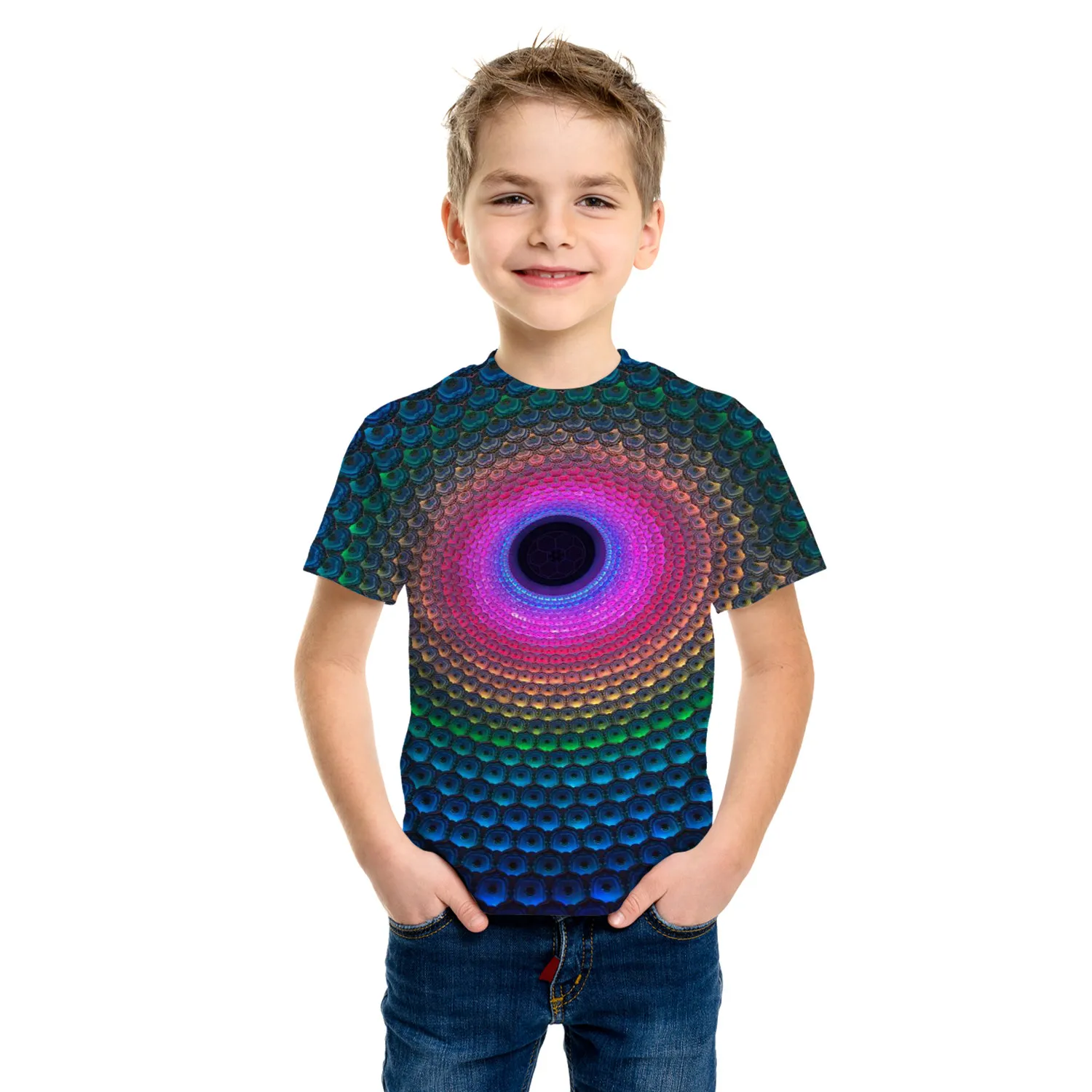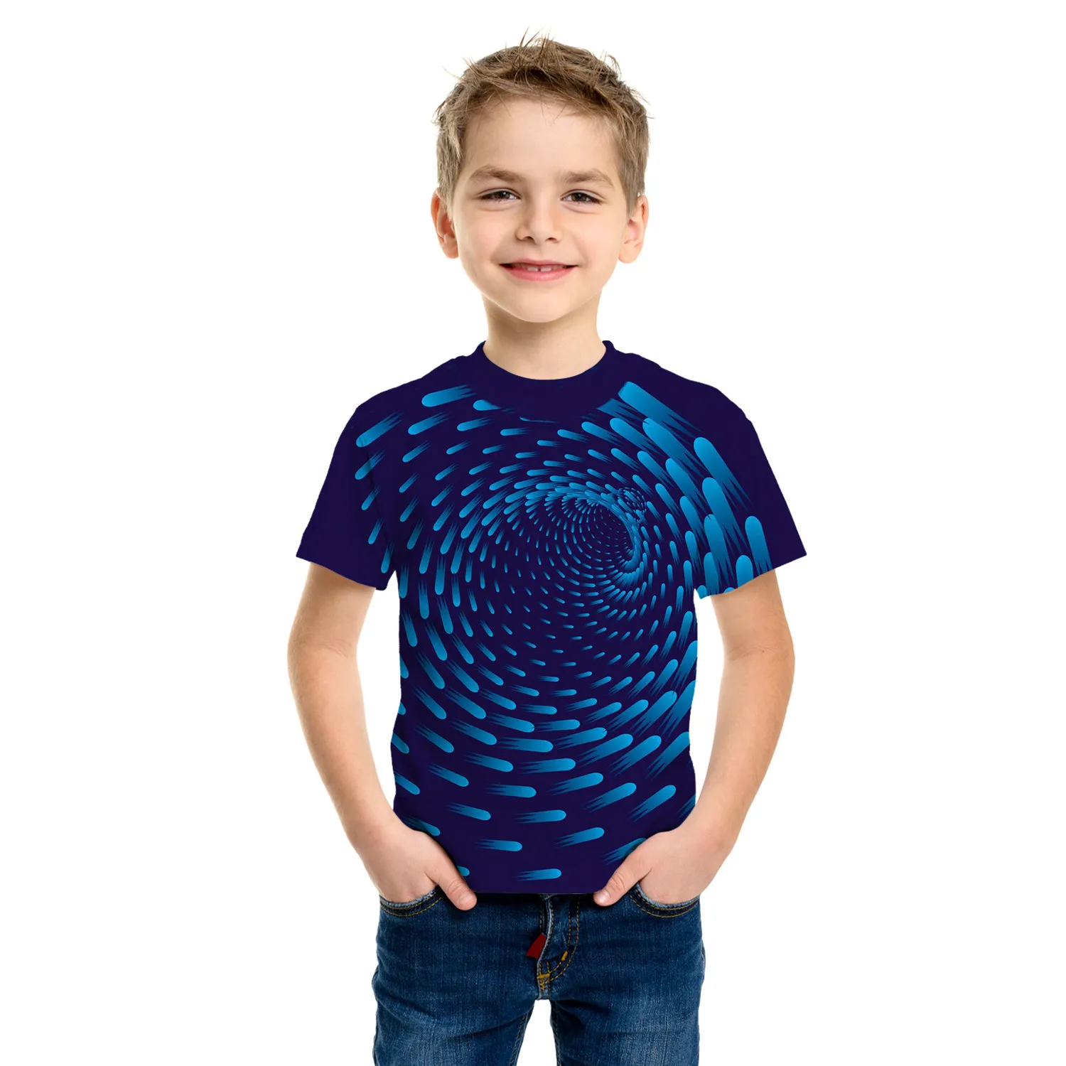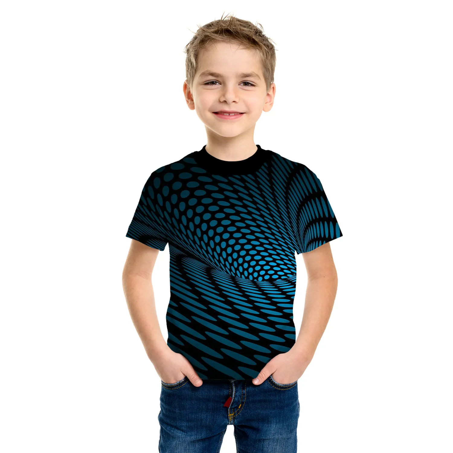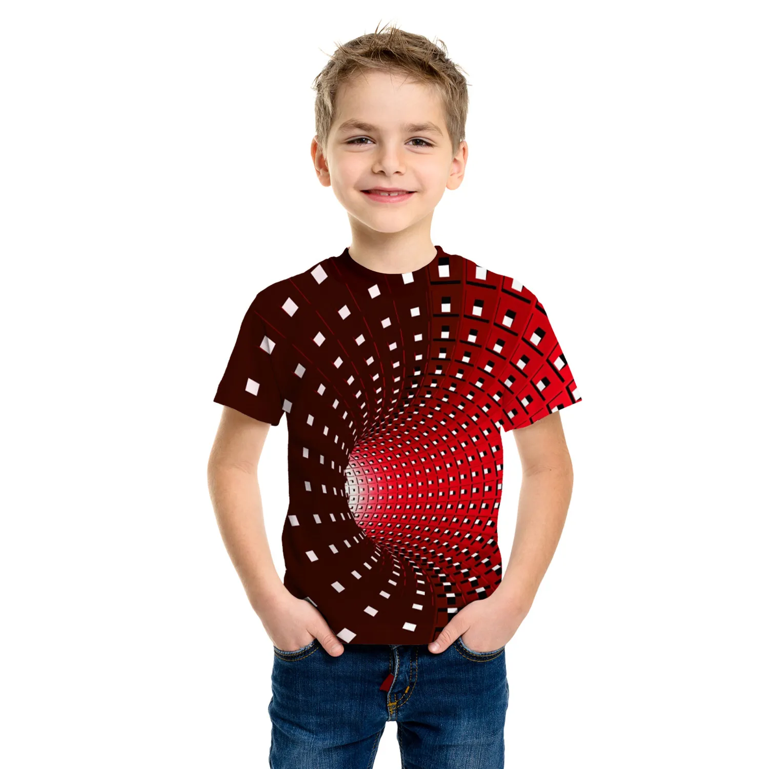 Boys’ 3D Optical Illusion Tunnel T-Shirt – Summer Casual Tee