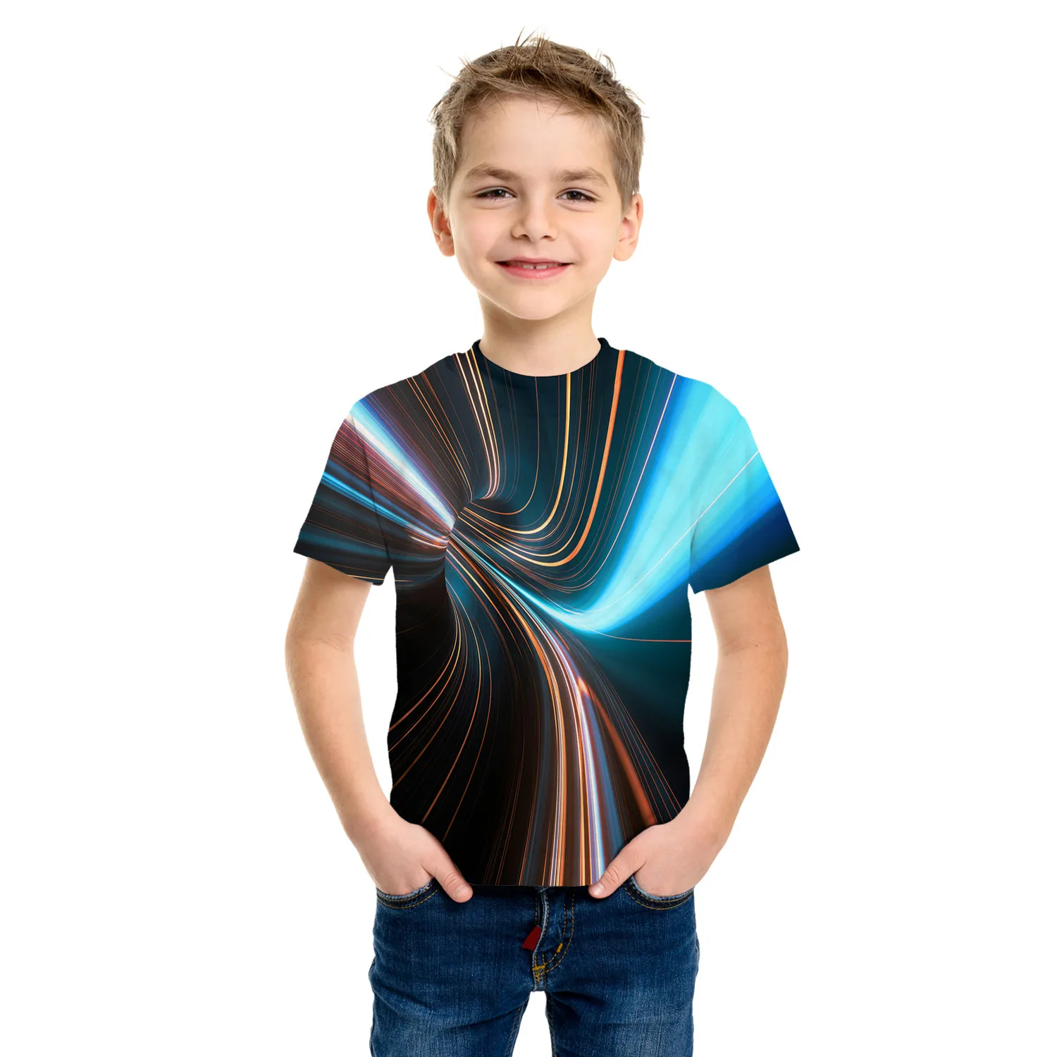 Made from soft, breathable cotton, the T-shirt is gentle on delicate skin while keeping children cool and comfortable on warm days. The short sleeve design allows easy movement, and the striking 3D tunnel print creates a fun, modern look that kids will love.