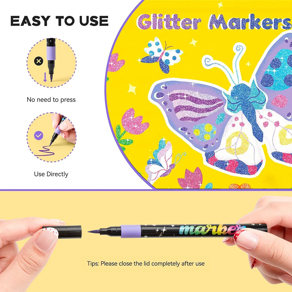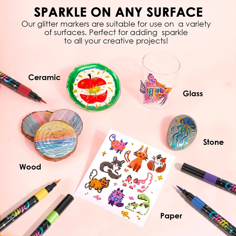 Welcome to “Crafters Dream Accessories”, your go-to shop for creative tools that bring your ideas to life. Our Glitter Brush Markers feature water-based ink with a shimmering effect, perfect for doodling, writing, and decorating all kinds of craft projects. These markers are ideal for adults and hobbyists who enjoy DIY art and creative projects. The flexible brush tip allows for smooth lines, precise strokes, and artistic flair in every design. Perfect for scrapbooking, card making, journaling, and handmade gifts, these markers add a sparkling touch to your creations. The water-based ink dries quickly, minimizing smudges while providing vibrant and long-lasting colors. Lightweight and easy to handle, they are comfortable for extended use during craft sessions. Whether you are creating glitter art, hand-lettering, or decorating notebooks, these markers make your projects stand out. Compact and portable, they are easy to store and take anywhere. At “Crafters Dream Accessories”, we provide high-quality art supplies that encourage imagination and creativity. Elevate your DIY crafts and make every project shine with our Glitter Brush Markers.
