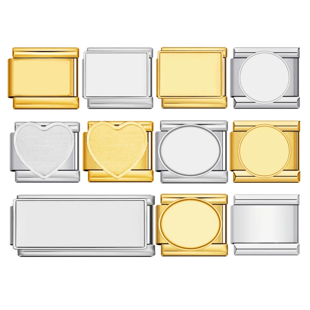 Featuring a variety of shapes including oval, square, and heart, these charms allow you to mix and match designs to suit your unique style. Ideal for DIY bracelet making, these interchangeable links make it easy to create custom pieces for everyday wear or meaningful gifts. Suitable for both men and women, they are a versatile addition to any jewelry collection.