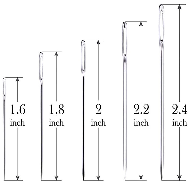 Make sewing and crafting easier with this 25PCS Large Eye Stitching Needles Set. These needles are designed with large eyes that allow threads, yarn, and cords to pass through easily, making threading quick and convenient. This feature is especially helpful when working with thicker materials such as yarn, leather thread, or embroidery floss.