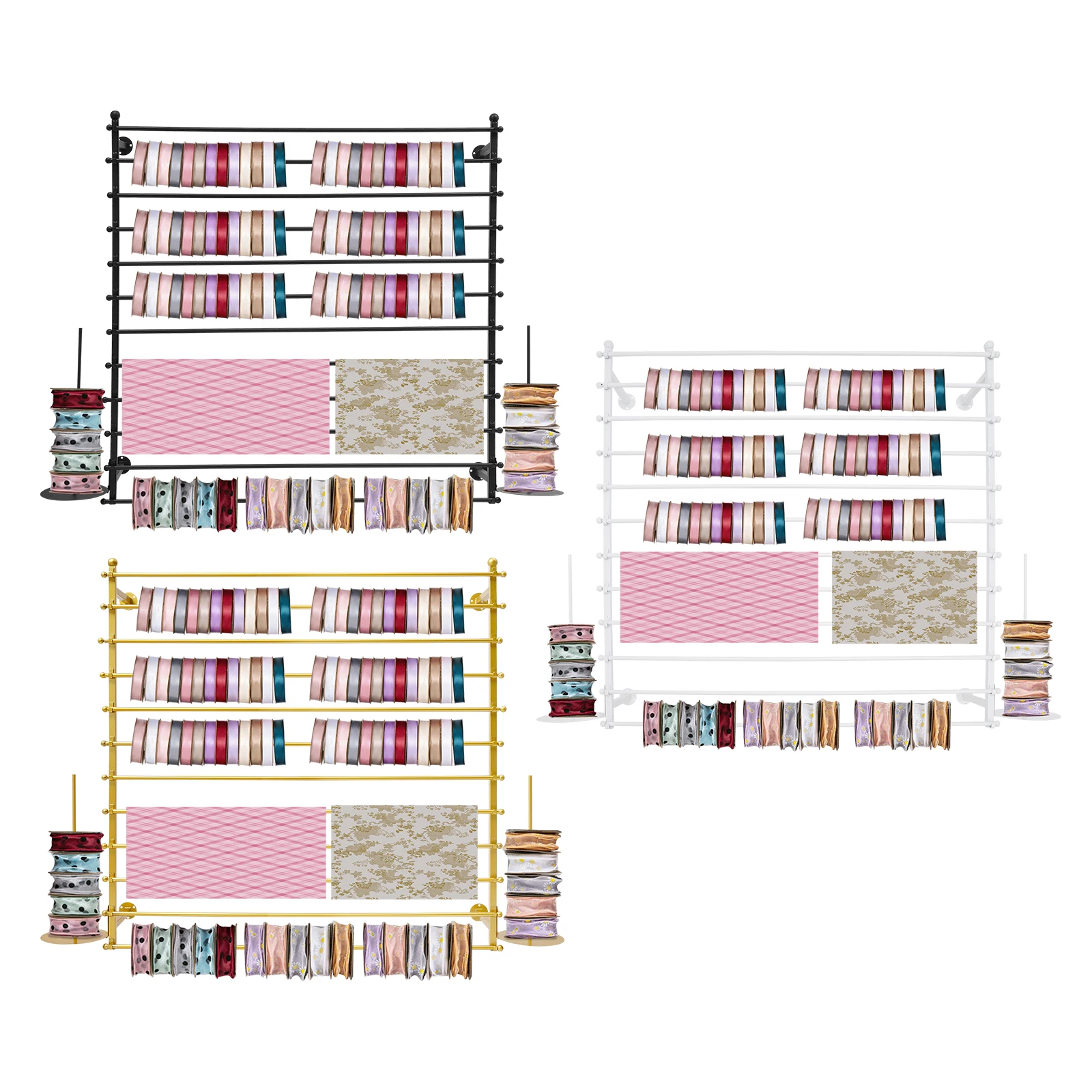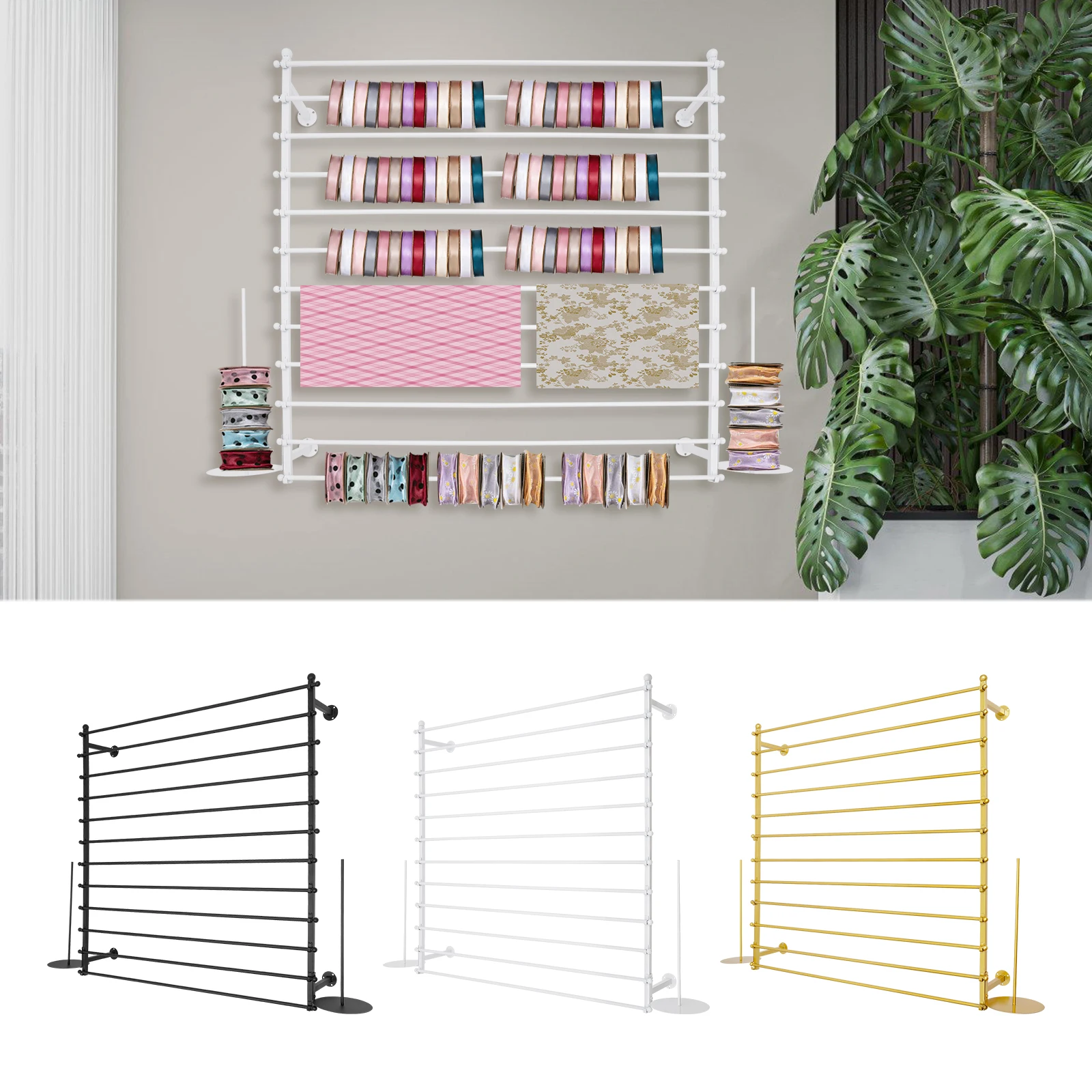 Ribbon Rack Organizer – Wall Mount & Desktop Ribbon and Yarn Storage Stand (Gold / Black / White)